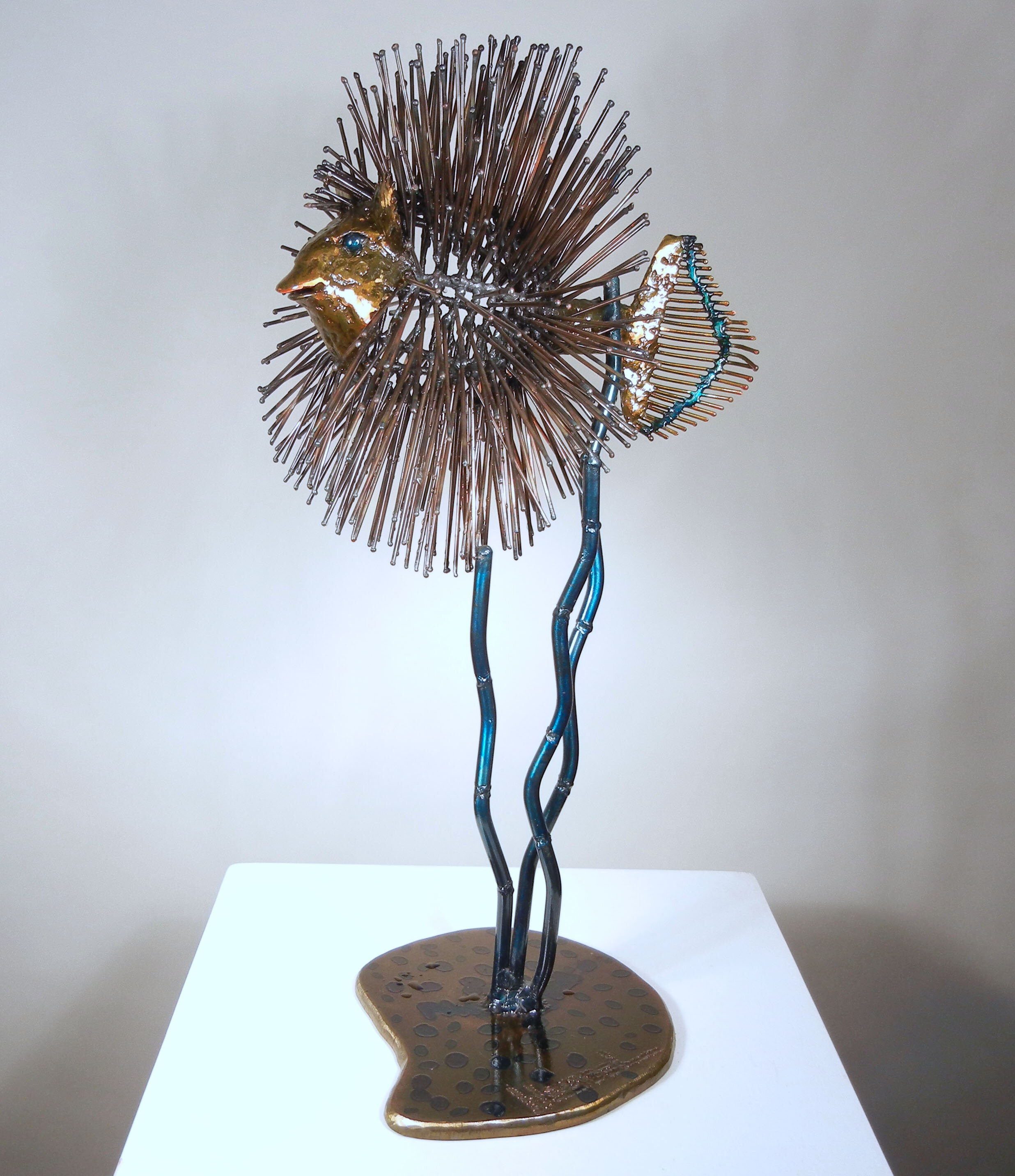 William Wessel has been creating one-of-a-kind iron sculptures for over twenty years. His career began with a sculpture course at Pittsburgh’s Carnegie Mellon University followed by a four-year internship with noted sculptor Joseph Fitzpatrick. William’s extensive portfolio includes a wide range of subject matter and size, although his focus through the years has been on animal forms such as insects, birds and fish. Depending on his mood, William treats his subjects with exacting detail or comical whimsy. Many of his more “unwordly” pieces are inspired by mythology, folklore and witchcraft. William’s work has been featured in exhibitions throughout the country and many of his heroic-sized pieces grace estates in Pennsylvania, New York and New England.